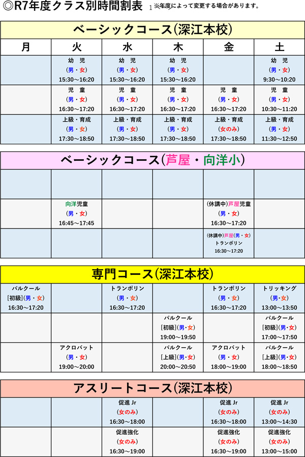 アクロバット | 7,000円/週1回曜日固定 10,000円/4回分(都度利用) 18,000円/8回分(都度利用) |